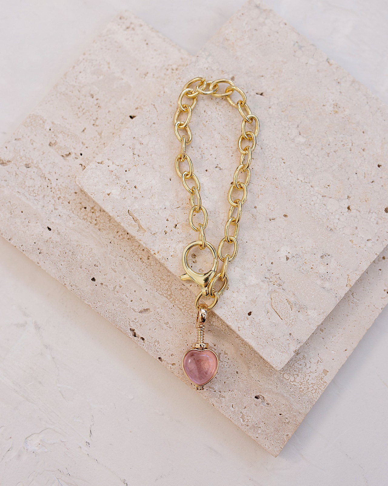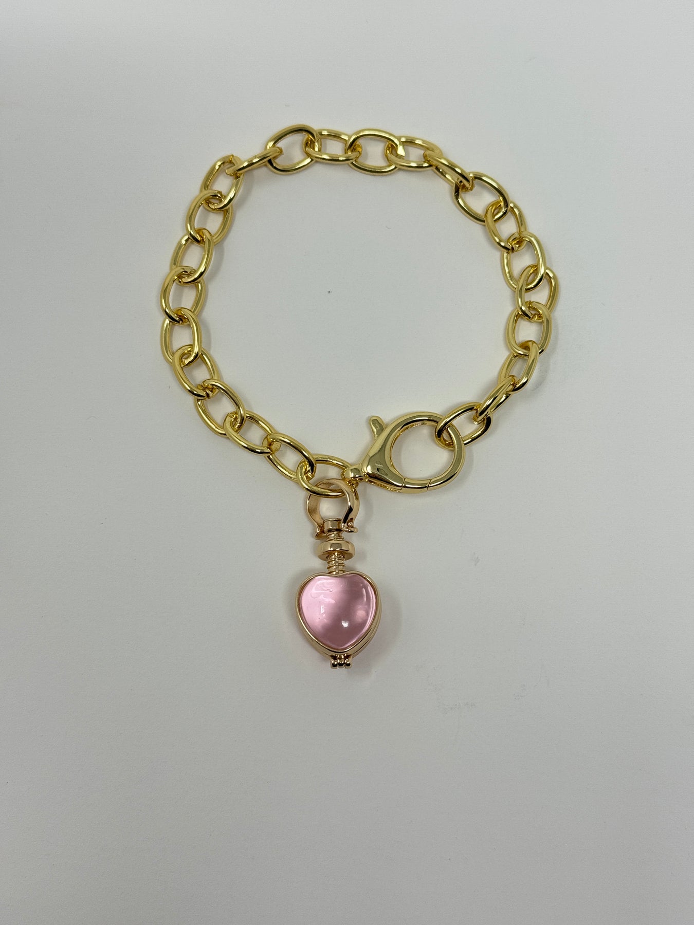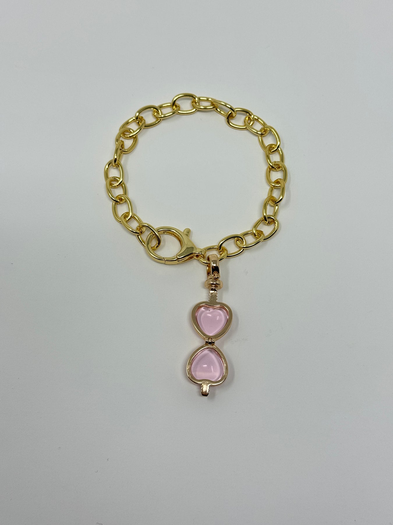 Mini Lulu Heart Locket Bracelet. Rolo chain with glass locket and screw closure. Allows you to put a picture, dried flower or other keepsake in to carry with you. Spring clasp allows for an adjustable length.