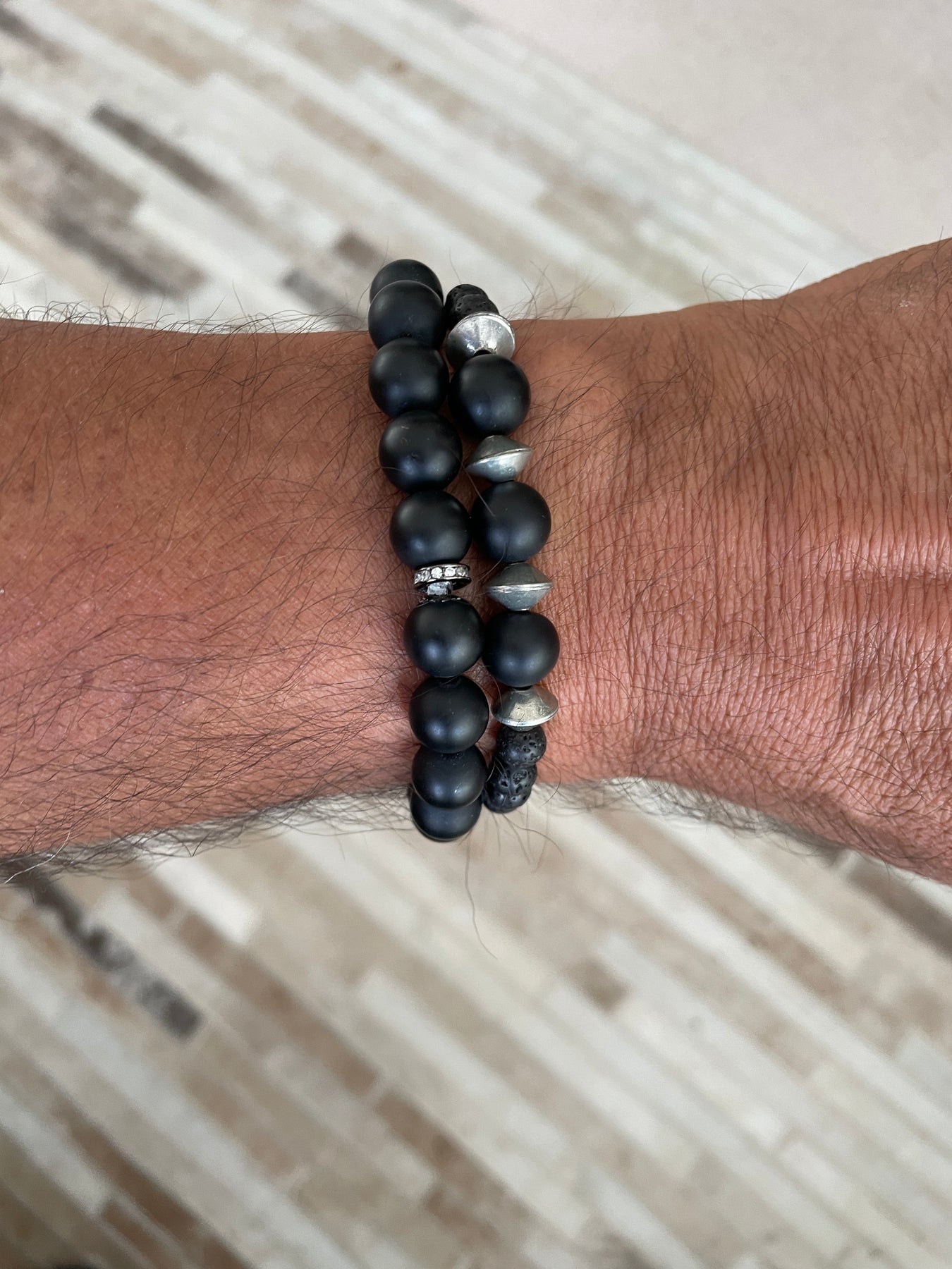 Paris Night Bracelet . Black matte agate beads with a cz rondelle feature.This can be worn alone or part of a stack. Such a versatile piece.