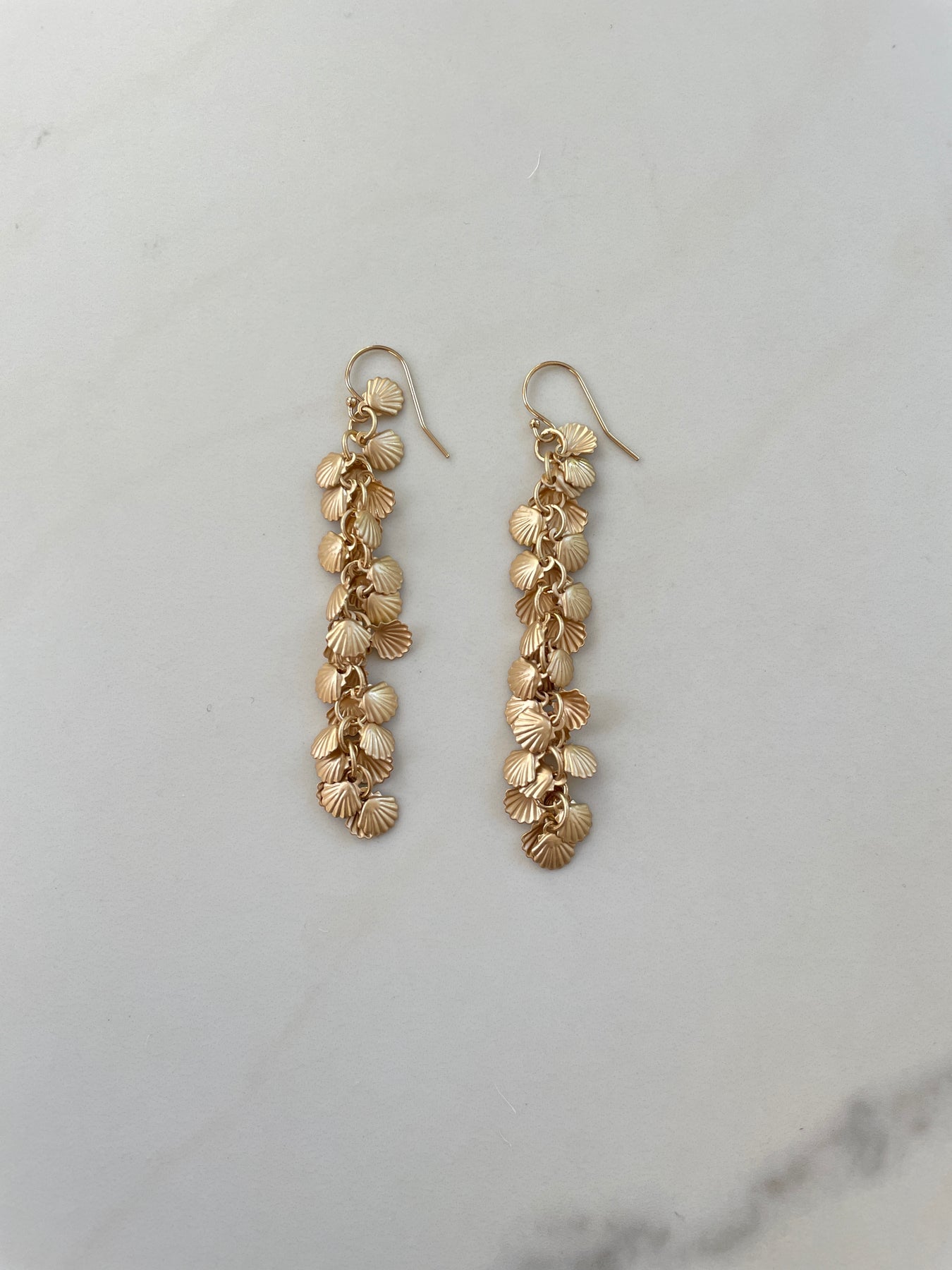 Seashell Earrings.  Strands of seashells in a gold matte finish.
