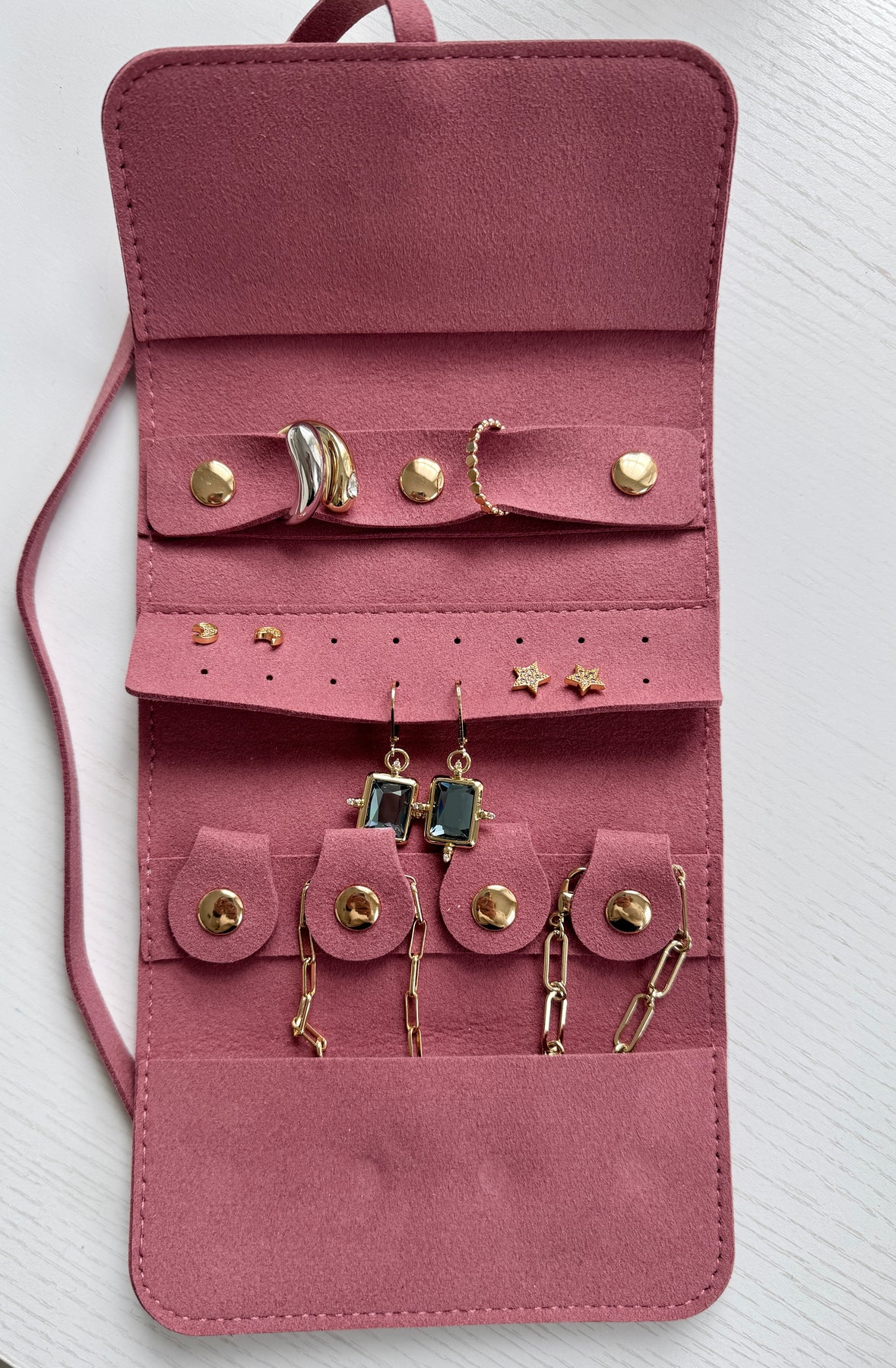 Suede Roll Up Travel Case.  Perfect for travel or keep in your purse.  Mauve suede.