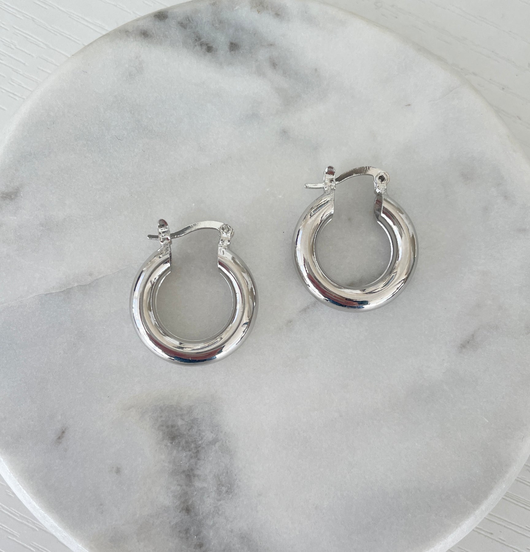 Suga Hoops . Classic silver chunky hoop earrings. A hoop that carries you day into the evening.