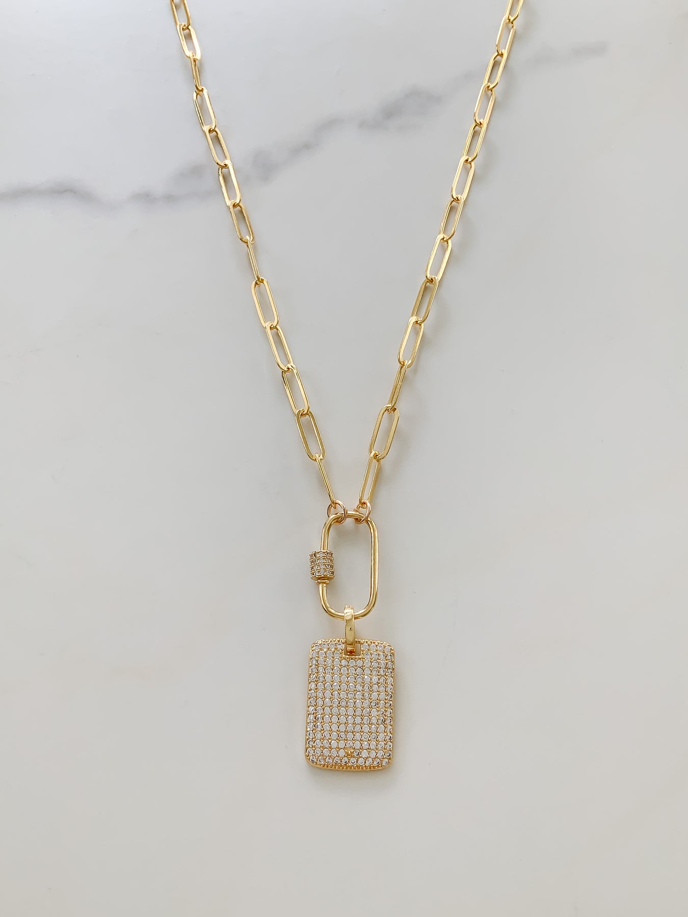 The Ali Necklace. For the woman who sparkles. Pave cz tag hangs from a charm holder and can be removed for a more casual look.