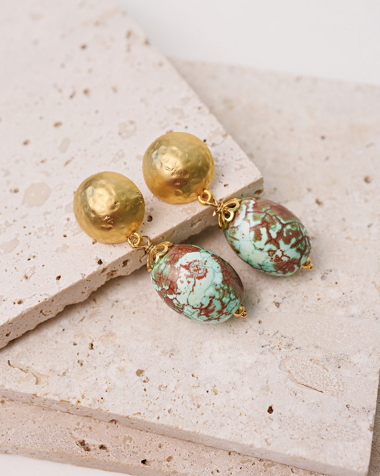 • Gold plate hammered post earrings .